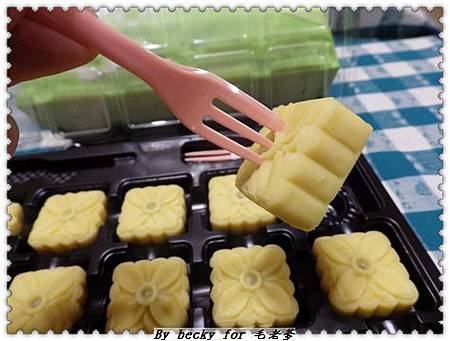 這個綠豆皇半茹素的朋友也可以品嚐,因為是純素的。