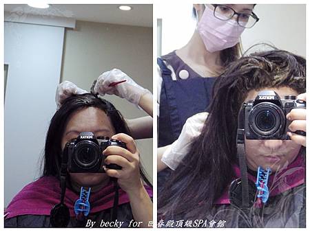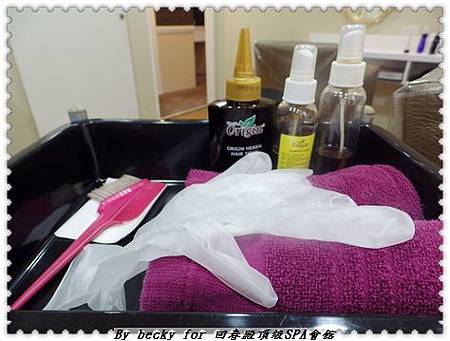 這時就換設計師來做塗抹護理動作,用著專用梳分層塗抹,在塗抺時有著淡淡的中藥香味,讓整個人很放鬆。