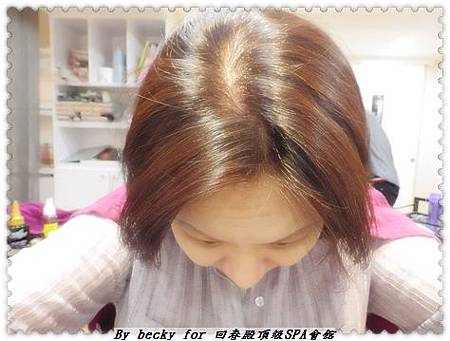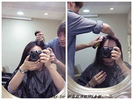 首先先是還沒整理的照片~可以看到不少的短白頭髮,在開始時,助理弟弟就先告知,有白頭髮的話,會變成金橘色,黑色部份是沒有變化,正好我也想把白頭髮蓋掉,這個頭皮護理還真選對了!