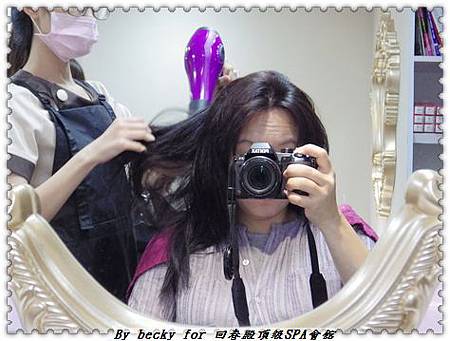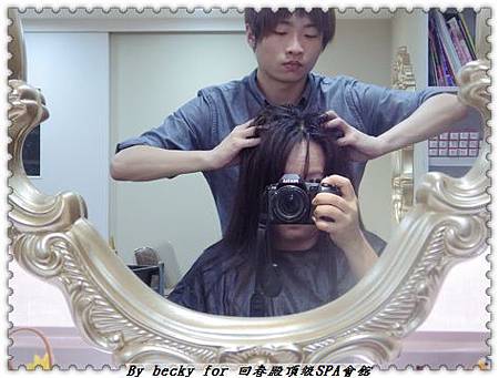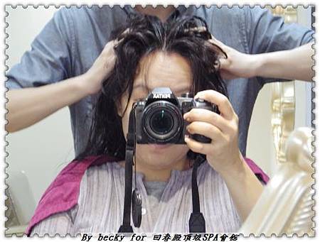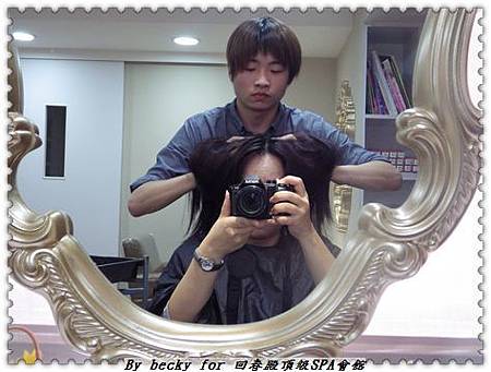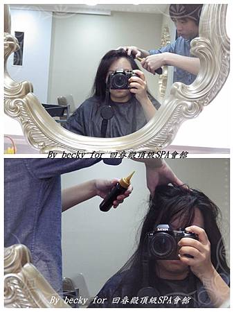 把髮泥清洗後,再洗髮二次後~再來就是噴上護髮滋養液,並且也是整個按摩;有些刺刺感覺是屬正常現象,因為頭皮完全清潔乾淨了~
