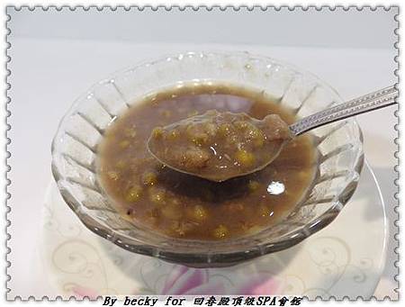 在最後送上了甜點~冰涼綠豆湯,熬煮的很綿密,不甜膩,冰冰涼涼很好吃,很完美的End!