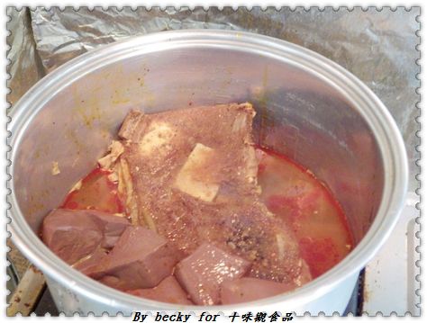 等稍微退冰,剪開外層塑膠包裝後,放到鍋中慢慢煮,同時也加入了鴨血。