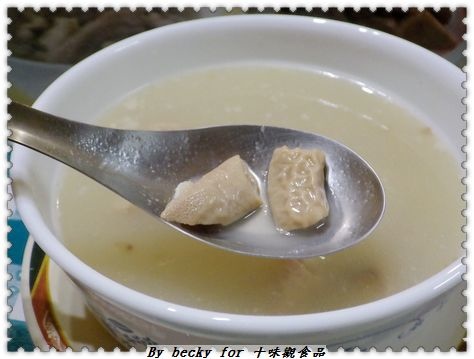 這碗四神湯裡頭有著豬肚、豬腸、薏仁及蓮子,還有燕麥;豬肚及豬腸吃起來有嚼勁,薏仁及燕麥有著咀嚼的口感,蓮子則是帶點甜味,全部食材吃起來味道很好。