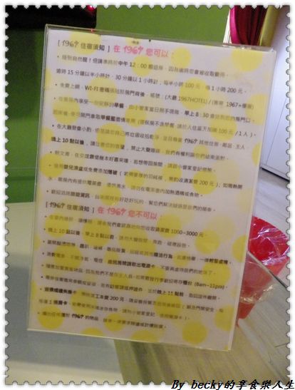 這是1967住宿須知,花個時間研讀一下,發現到可以請旅店幫忙代訂早餐,不過每個人要100元喔!