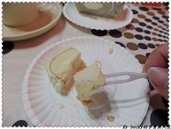 吃一口,嘴中有著黑芝麻的微香,與鮮奶油一起有著豆香及芝麻香,整個在嘴中化開,冰冰涼綿密又鬆軟的口感,再加上不甜膩,老媽很愛這個芝麻燕麥豆漿捲。