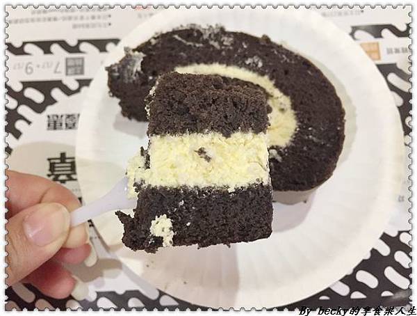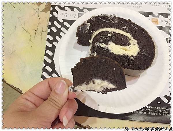 而巧克力燕麥豆漿捲~用55%可可濃度製成蛋糕體,有著濃郁的香氣。