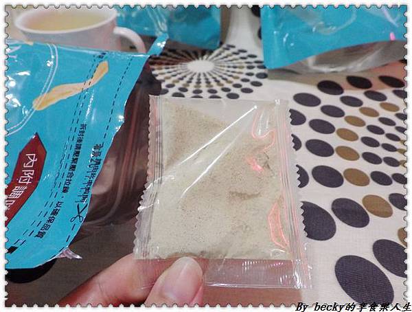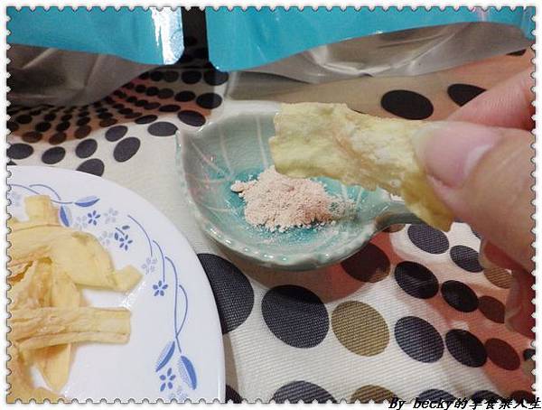 把調味粉倒一點到小盤中,然後沾著吃,微淡香的檸檬香還有些許的鹹味。