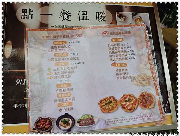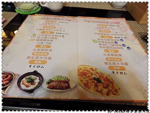 翻閱一下菜單,這裡點餐屬套餐式,有分398及298的價位、中西式主食可供挑選,當然也可以單點。