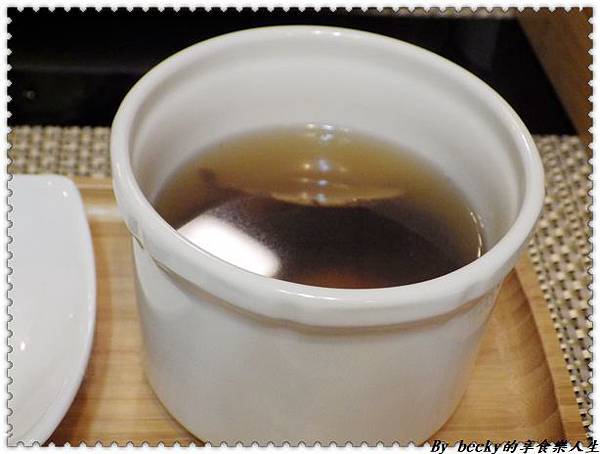 私房前菜~松露蘿蔔糕及冰梅苦瓜,這個是跟湯品~紅棗猴菇湯一起上桌喔!