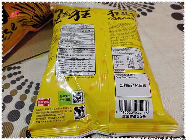 背後則是有著狂起司各種資訊~聯華食品都有安心履歷,可以讓大家吃的安心及放心。