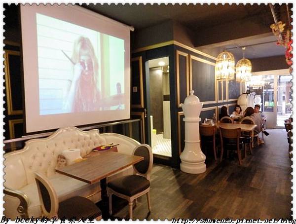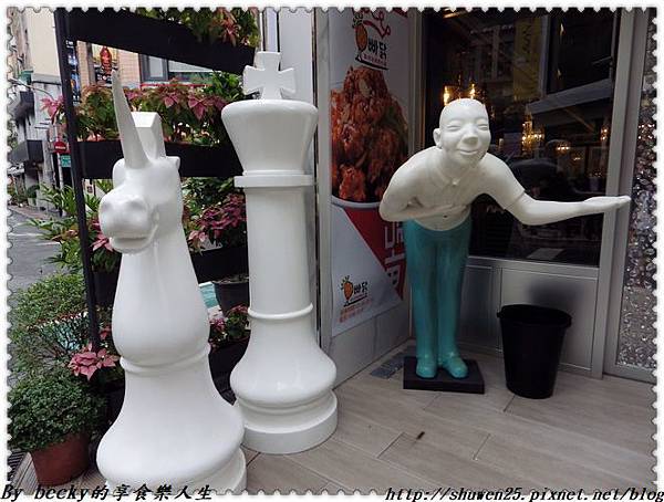 門口有著西洋棋子模型,還有個歡迎光臨的人形像。