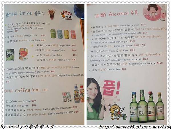 對了,這次除了飲料外,也有韓國酒可以選擇喔!(未滿十八歲請勿飲酒)