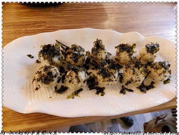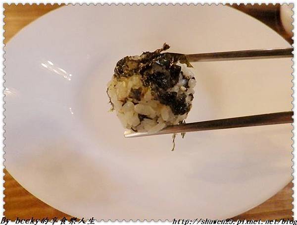 就是韓式飯糰,不過是比較小一點,很像握緊的拳頭~熱熱的飯與海苔絲混會,再灑上白芝麻,特別是有用韓式芝麻油,味道很香濃,一次一口真的令人停不下嘴啊!