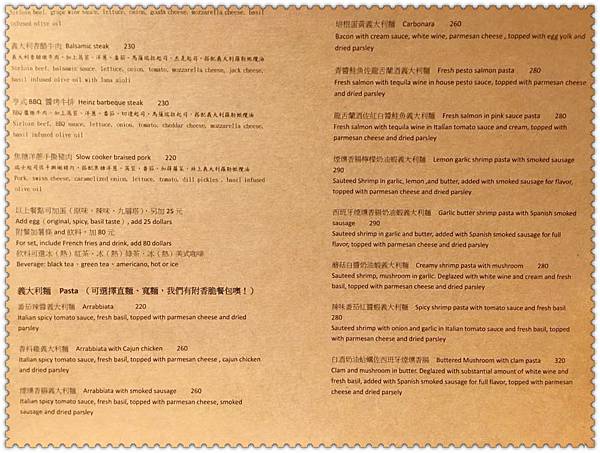 而餐點除了有義式風格外,也有半美式料理,任君選擇。