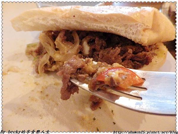 牛肉口感相當軟嫩,與萵苣、洋蔥和甜椒一起增添整個清爽口感,而裡頭的調和了橄欖油和店家特製的芥末醬與切達起司、馬蕯瑞拉起司入口,帶著起司香芥末味,一切恰到好處的好吃,略鹹的牛肉與軟法麵包的組合,真是絕妙好搭。
