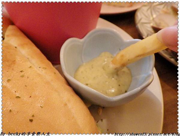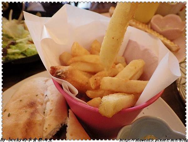 而現炸的薯條搭配的也是店家自製的沾醬,吃起來很像芥末醬,有點甜有點酸,整個平衡了吃多油膩,也是讓人停不了口。