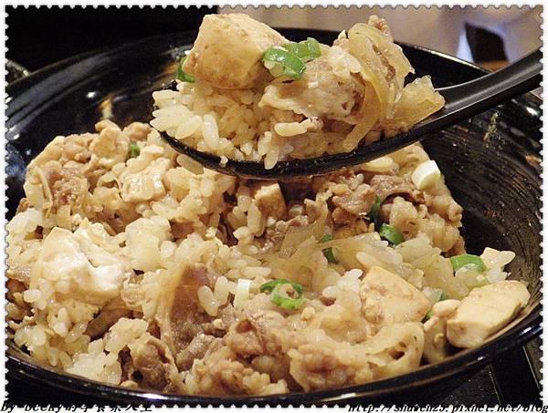 裡頭有洋蔥、豆腐及牛肉,拌勻後,每一口都可以吃到豆腐及牛肉。