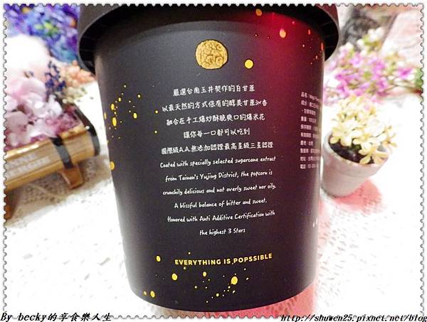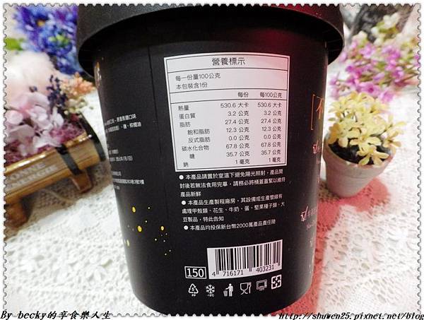 罐子側邊印製有營養標示~呃!雖然熱量頗高,但美食當前,減肥永遠是明天的事。