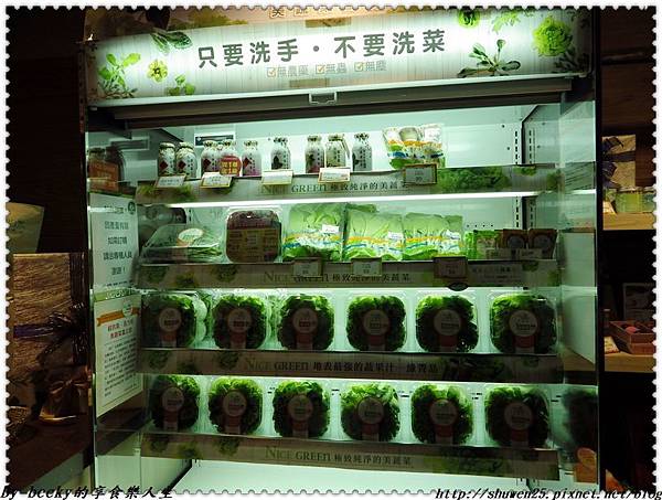 進入店中,右手邊是可以選購商品—蔬菜及保養品、保健食品。