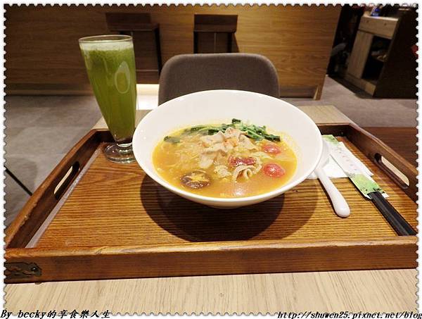 這是酸辣豚肉麵NTD260及招牌蔬果汁NTD160~