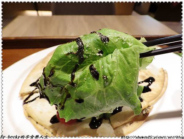 而萵苣上頭灑有起士粉,吃起來清脆有水份帶有微鹹味,整體搭配真的新鮮好吃。