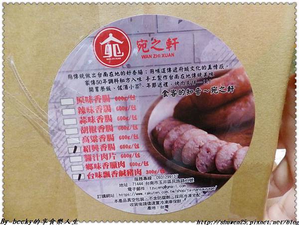 每一次的烤肉總會有一味~香腸,而這種媽媽的味道則是大人小孩都喜歡的食物,而這次收到台南的宛之軒經過多年不斷地研發、改進調料配方,製作出美味的香腸、臘肉,在台南已經有好口碑,而現在也可以宅配讓更多人也可以吃到傳統手工製作好味道。