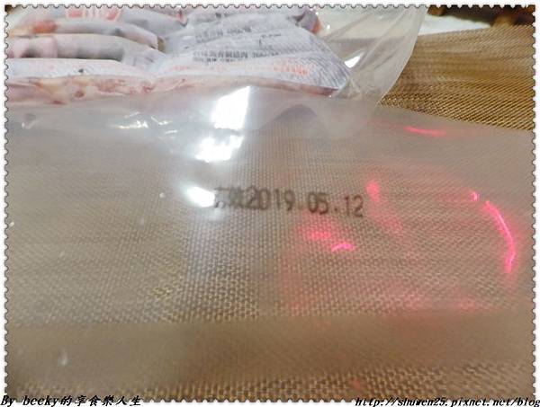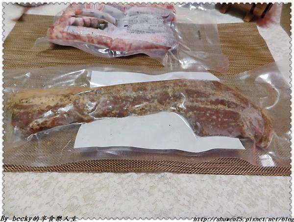 有效日期印製在真空包裝上,未拆封的鹹豬肉可以看到黑胡椒顆粒。
