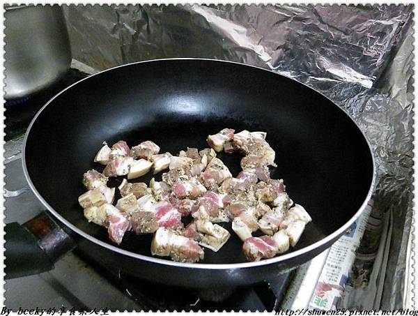 鍋中不放油,先大概煎炒一下,聞的到黑胡椒香喔!