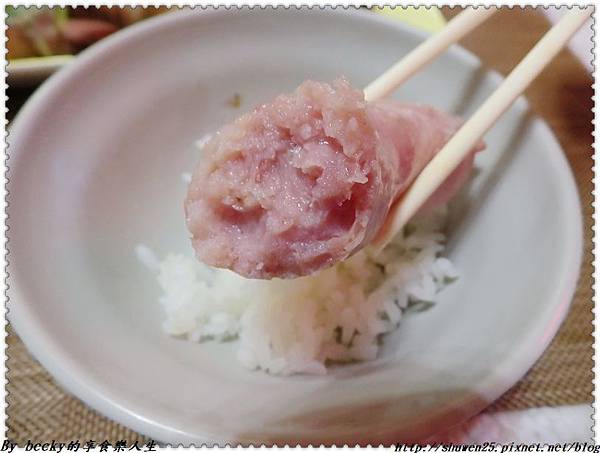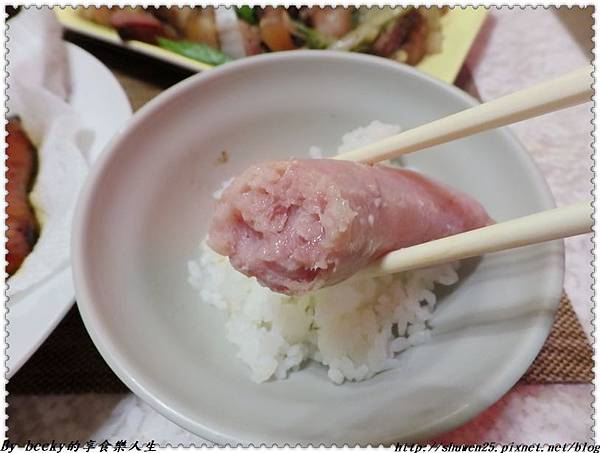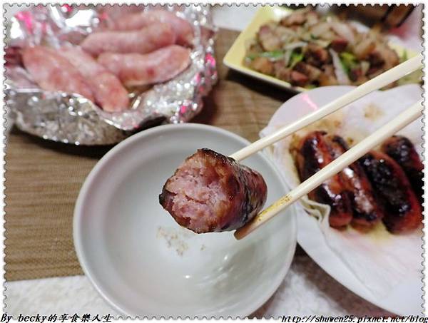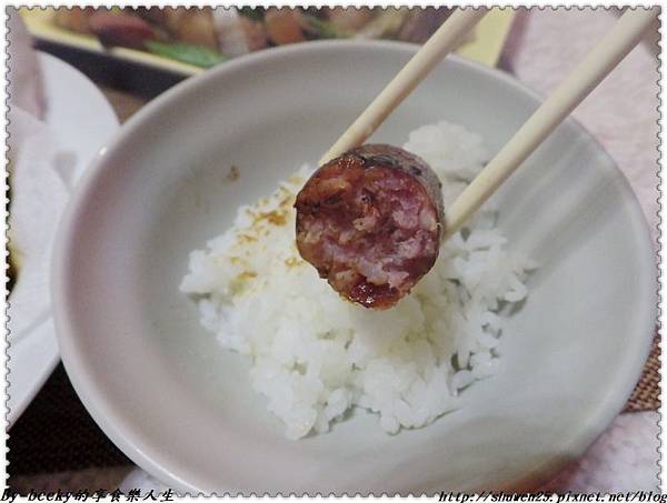 而蒸的紹興香腸~有著香醇的陳年紹興酒味,咬一口有著豐盛的肉汁,可以看的到豬肉的厚實鮮美口感。