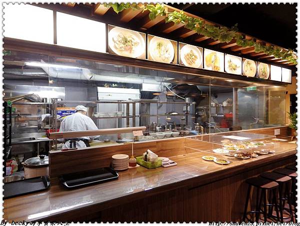 半開放式的廚房,可以看到師傅們在製作餐點。