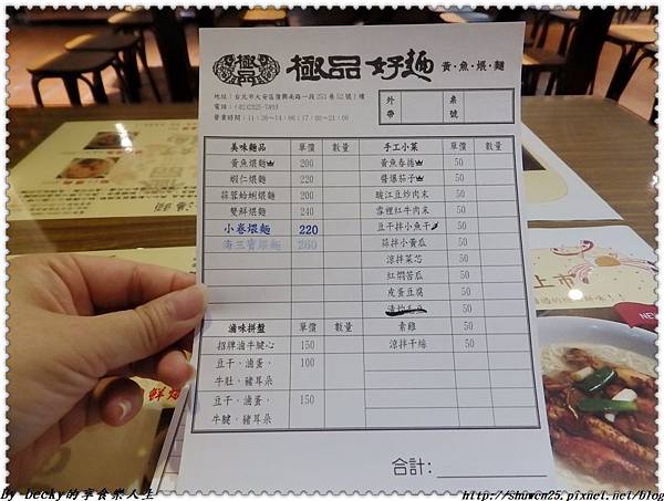 在極品好麵食堂就只有煨麵,除了店內推薦的黃魚煨麵外,還有其他的煨麵新品可以選擇,在桌上都已經放置有餐具及點菜單~