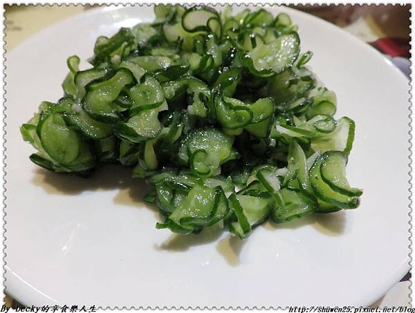 這道小菜是吃刀工的,可以看到小黃瓜切的薄,且厚度均勻,入口咀嚼蒜味濃厚且清脆可口,還有些許蒜頭的微辣,用來配飯配麵再合適不過了!