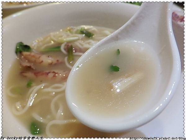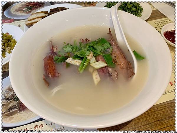 喝一口湯頭,裡頭有煸香過的薑味及小卷的鮮甜味,還有蔥及香菜添加香氣。