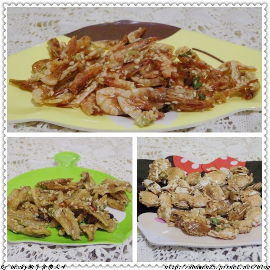每隻碩大的冠軍鮮蝦,配上白芝麻及蔥花,整個入口有著酥香及微甜鹹口感,可以吃的到整隻鮮蝦的美味,讓人越吃越涮嘴喔!
