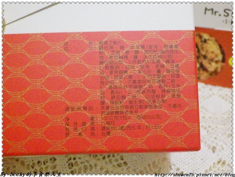 先來看蔥辣丁香片:是以白紅相應包裝小盒,有著丁香片的圖案,是烘烤無油炸的食品~