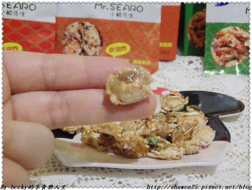 這次品嚐到小鯨先生烘烤香酥的蔥花冠軍蝦、蔥辣丁香片、原味花蟹酥海味零嘴,用心嚴選新鮮食材,獨門配方經煮料、拌料、烘烤等多道工法,專業的產品包裝線與流程,確保每一包好品質,以烘烤無油炸方式,做出好美味、少負擔的海洋休閒零嘴,讓大家可以吃的到輕盈的健康美味。