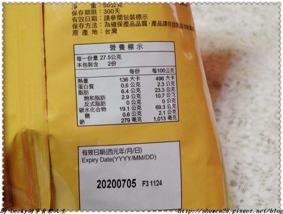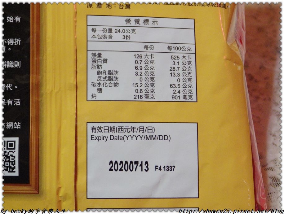 一樣背後則是活動說明、營養標示及有效日期,還有品名及成份標示資訊