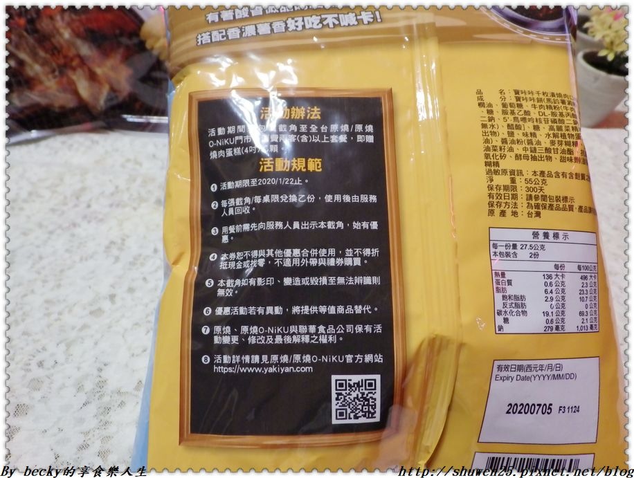 背後則是活動說明、營養標示及有效日期,還有品名及成份標示資訊。