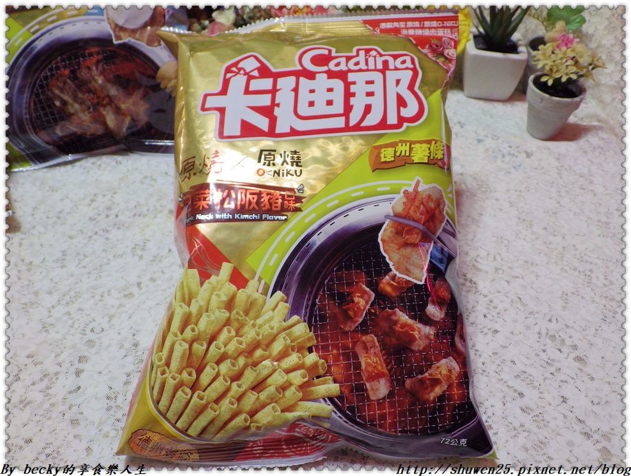 這次收到了三種不同的零食~卡廸那洋芋片蔥鹽牛舌、卡廸那德州薯條泡菜松阪豬及寶咔咔千枚漬燒肉。