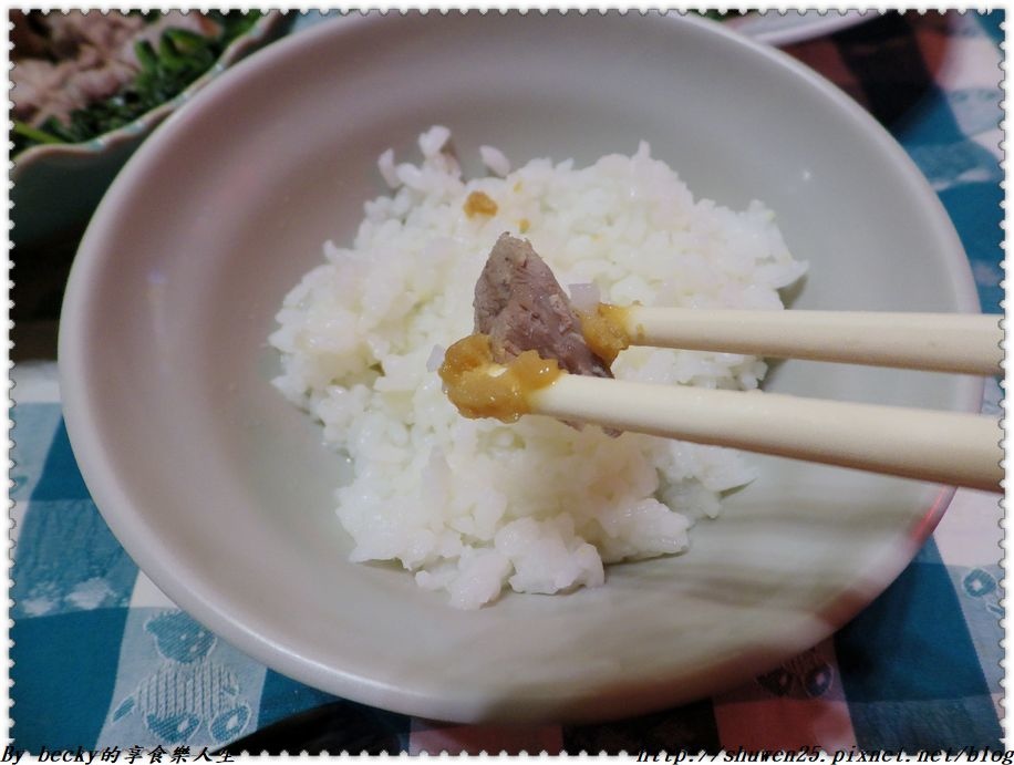 帶點熱氣融化了豆腐乳後攪拌,可以聞到豆腐乳的香氣。