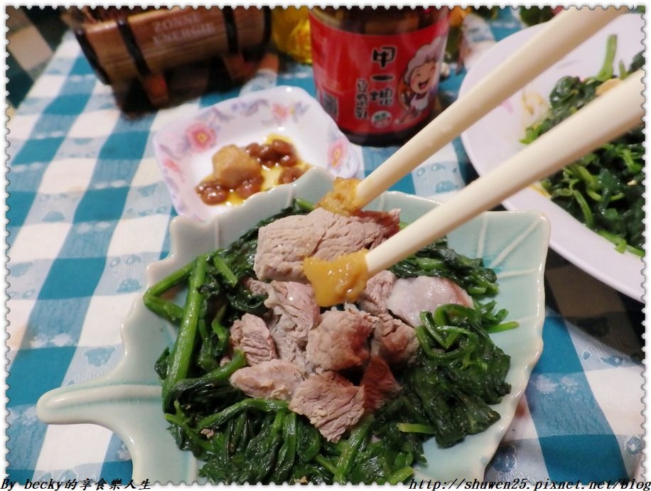 另一道就是川燙過的青菜及豬肉拿來沾豆腐乳。