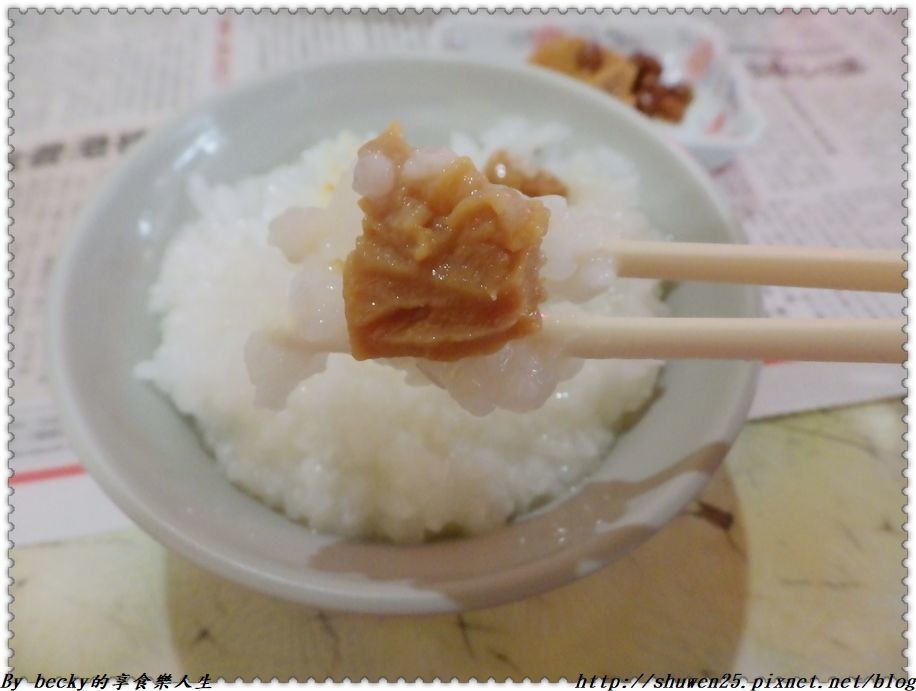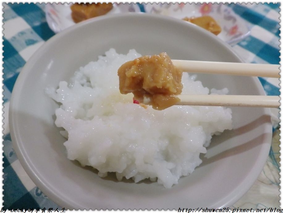 夾一塊豆腐乳配上白粥,入口後帶有豆香,甘甜回甘,吃起來不死鹹也不死甜,整個很爽口,