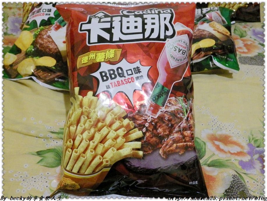 先來看TABASCO 調味BBQ口味德州薯條~紅色的包裝~上面的圖案是BBQ及薯條,大大的TABASCO的辣