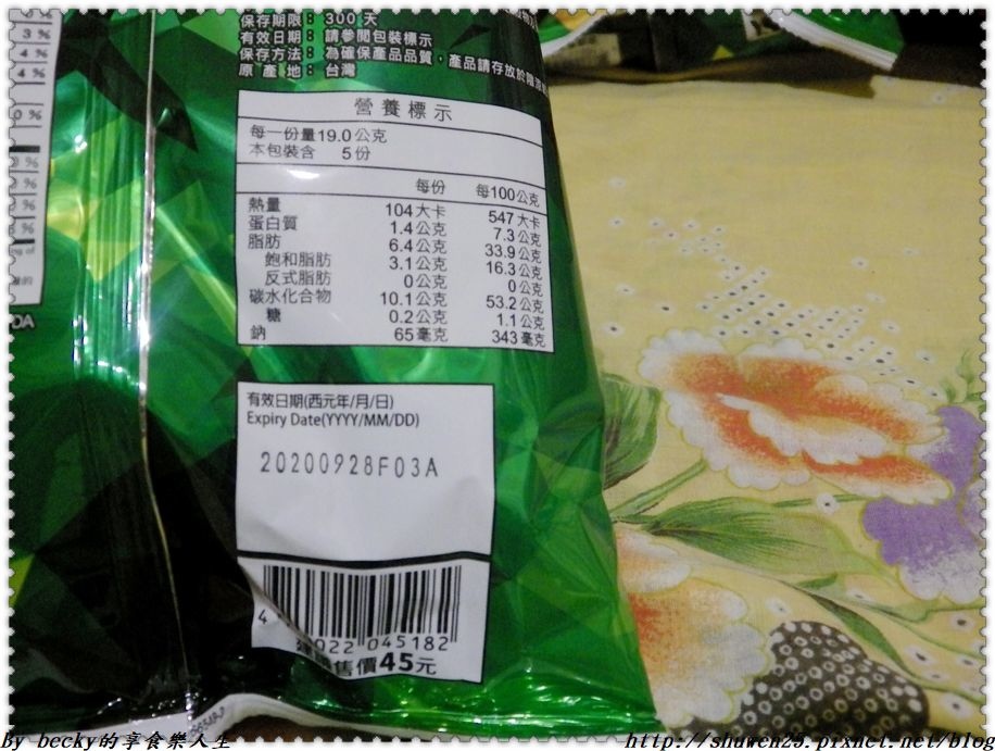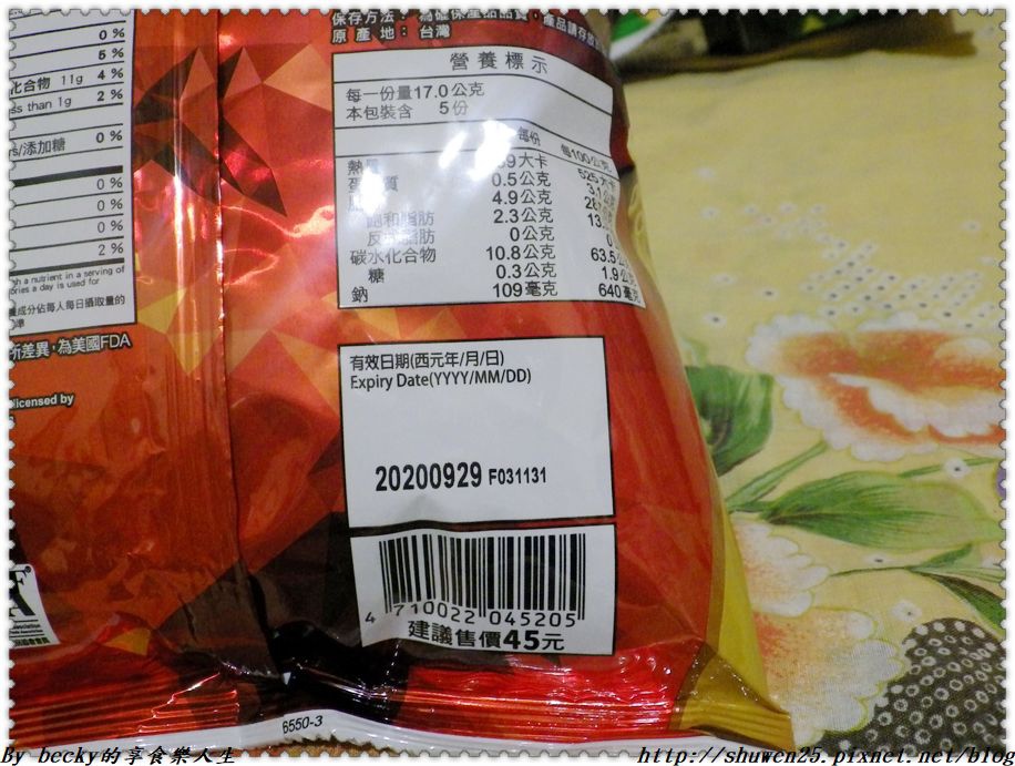 一樣有中文的營養標示及有效日期,呃!熱量還蠻高的咧!