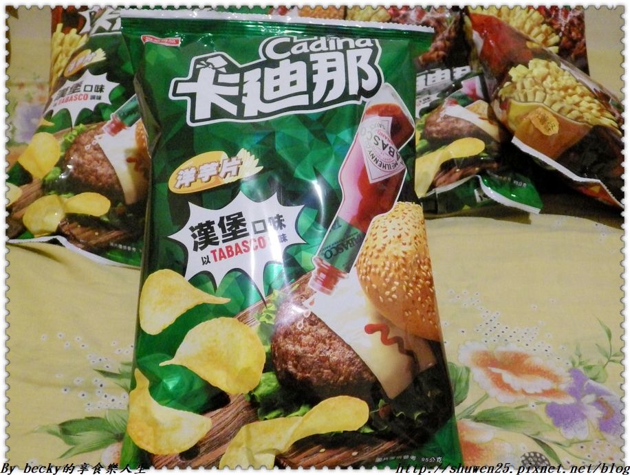 吃一口TABASCO 調味漢堡口味洋芋片~有著TABASCO調味的100%新鮮洋芋切片做成經典美式漢堡口