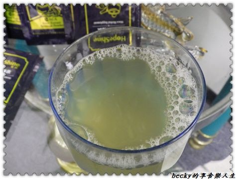 倒入杯中沖溫開水,顏色呈現淡黃色,充滿著淡淡的香味,很好聞的味道。
