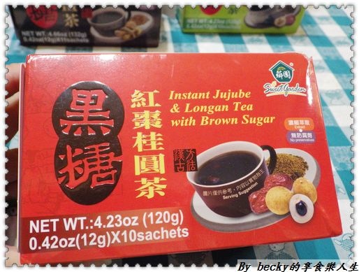 再來就是黑糖紅棗桂圓茶(https://goo.gl/tQwD5U),一盒裡有10小包,每一小包有12G。