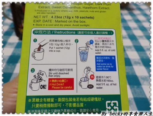 最後是黑糖烏梅山楂茶(https://goo.gl/ltKvoy),它一樣也是一盒10小包,每一小包有12G。