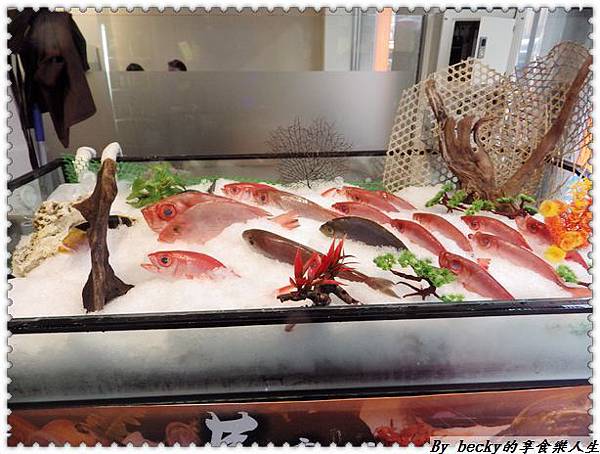 一進到店裡可以看左右兩邊新鮮的漁獲及海鮮再來就是櫃台。
