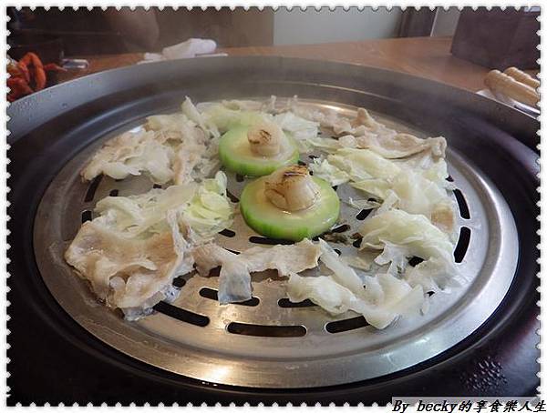 大約蒸個3分鐘可以看到新鮮的蔬菜、肉及干貝呈現在眼前。